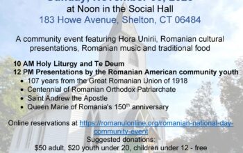 Românul Corp and the Holy Brâncoveni Martyrs Romanian Orthodox Church invite you to celebrate the Romanian National Day Sunday, November 30, 2025 at Noon in the Social Hall 183